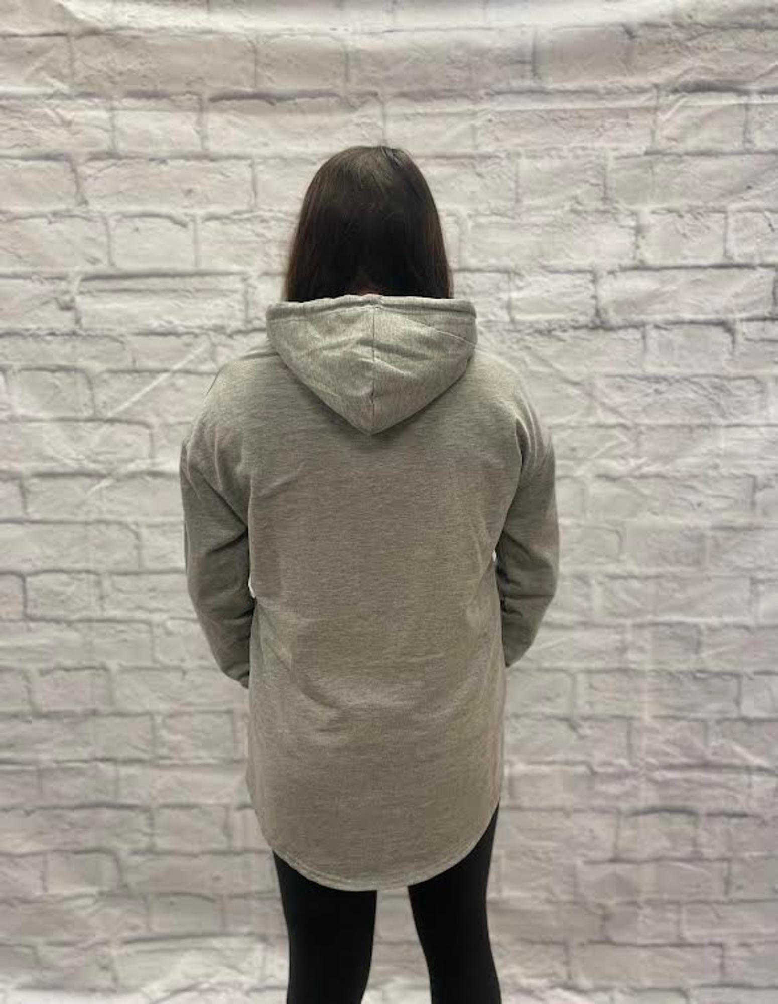 This Heather Grey pullover hoodie includes a screen-printed Merrimack College circle shield logo on top left corner of hoodie. Fleece interior. Body/Hood Lining: 59% polyester, 35% Rayon, 6% spandex.