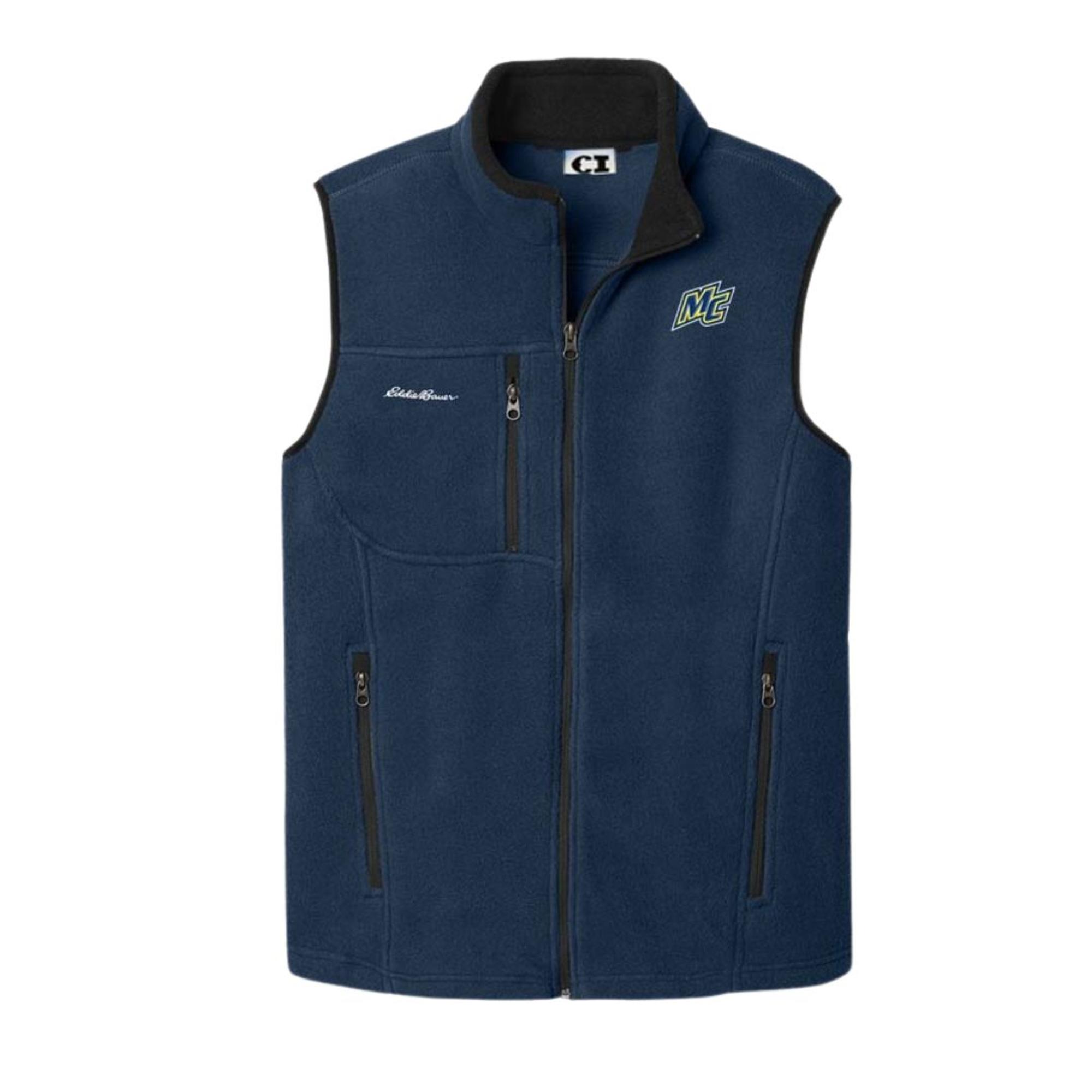 Warriors will stay warm and look sharp in our Eddie Bauer Fleece Vest; River Blue Navy with an embroidered MC Logo over the left breast. A pocket sits over the right breast. Wear it to the next Ice Hockey game or for a stroll around campus.