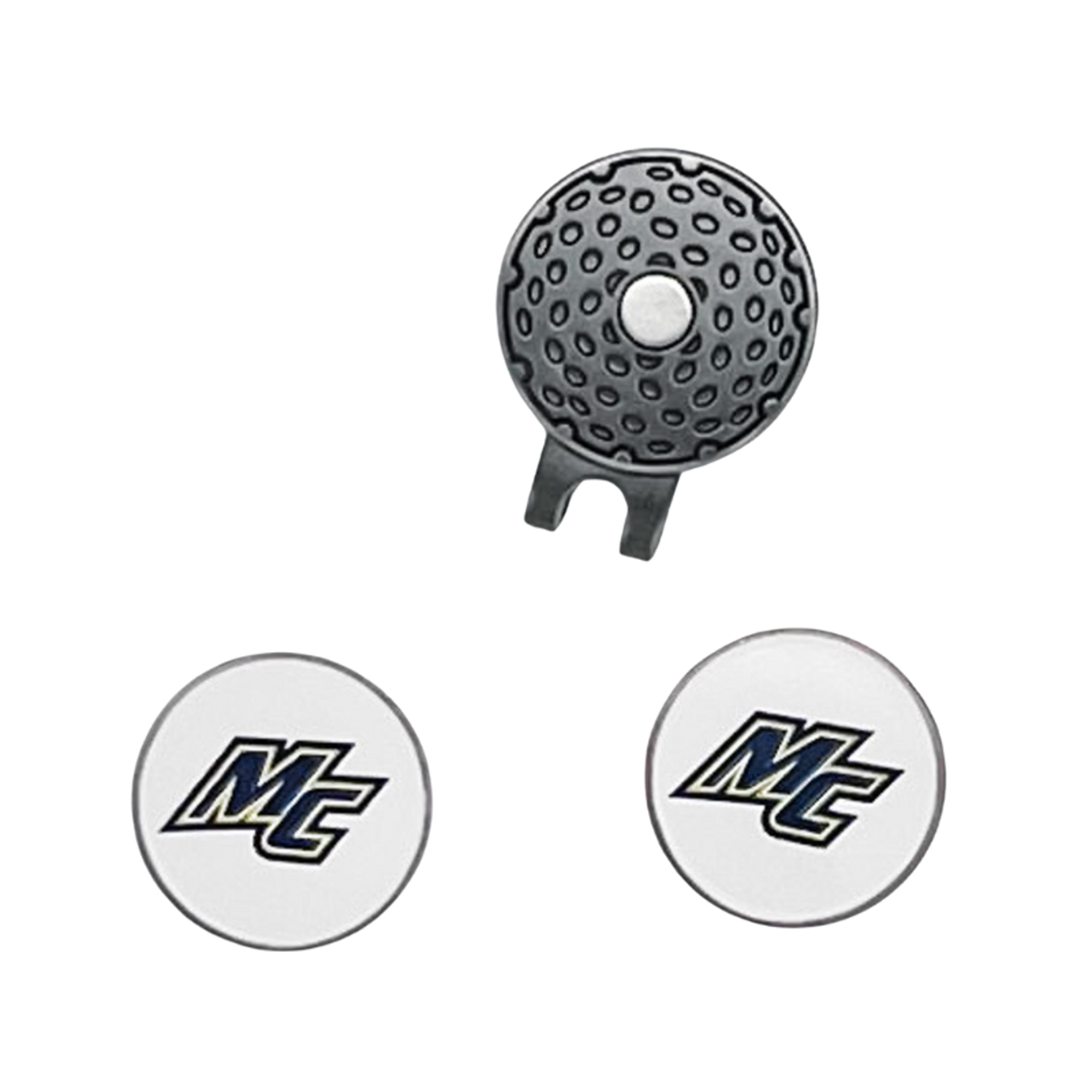 This MC golf cap clip is the perfect addition to your golf collection, or another golfer's in your life! It includes a magnetic clip with 2 double sided markers, and fits most brims!
