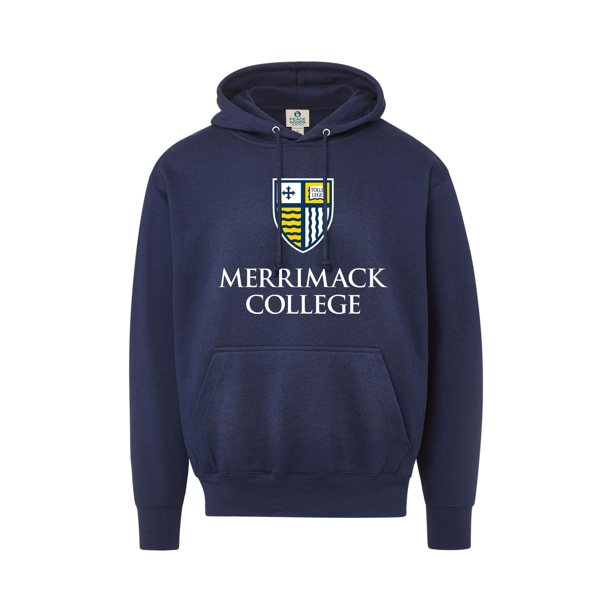 Wrap yourself in Merrimack Warrior pride with the ultra-cozy Merrimack Shield Peace Goods Fleece Hood. This isn't your average sweatshirt; it's a statement piece crafted from premium fleece, offering unparalleled softness and warmth. The iconic Merrimack College shield logo proudly displayed adds a touch of collegiate style to your everyday look. Perfect for chilly game days, cozy nights in, or layering on those brisk New England mornings, this hoodie provides exceptional comfort and lasting quality. The relaxed fit ensures all-day wearability, while the drawstring hood offers adjustable warmth and protection from the elements. Show your school spirit in style and comfort with the Merrimack Shield Peace Goods Fleece Hood – the perfect blend of comfort, style, and Warrior spirit. Available in a range of sizes to find your perfect fit.